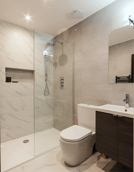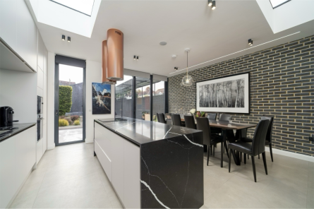 The outbuilding was originally planned to be a space for entertaining, but the homeowners decided to switch direction and convert the space into their very own home office following the onset of the Covid 19 pandemic. They, no longer have to endure lengthy commutes and face covering protocols, rather just a 20-second walk to their place of work.